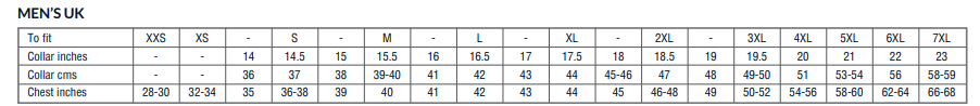 | 2XS | XS | Small | Medium | Large | X Large | 2X Large | 3X Large | 4X Large | |