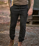 70% ringspun cotton/30% polyester. Three tread fabric for a smooth surface.Brushed back fleece.Double dyed.Ribbed elastane high waistband with drawcord.Two side pockets.Rear pocket.Elastane cuffed leg ends.Twin needle stitching.