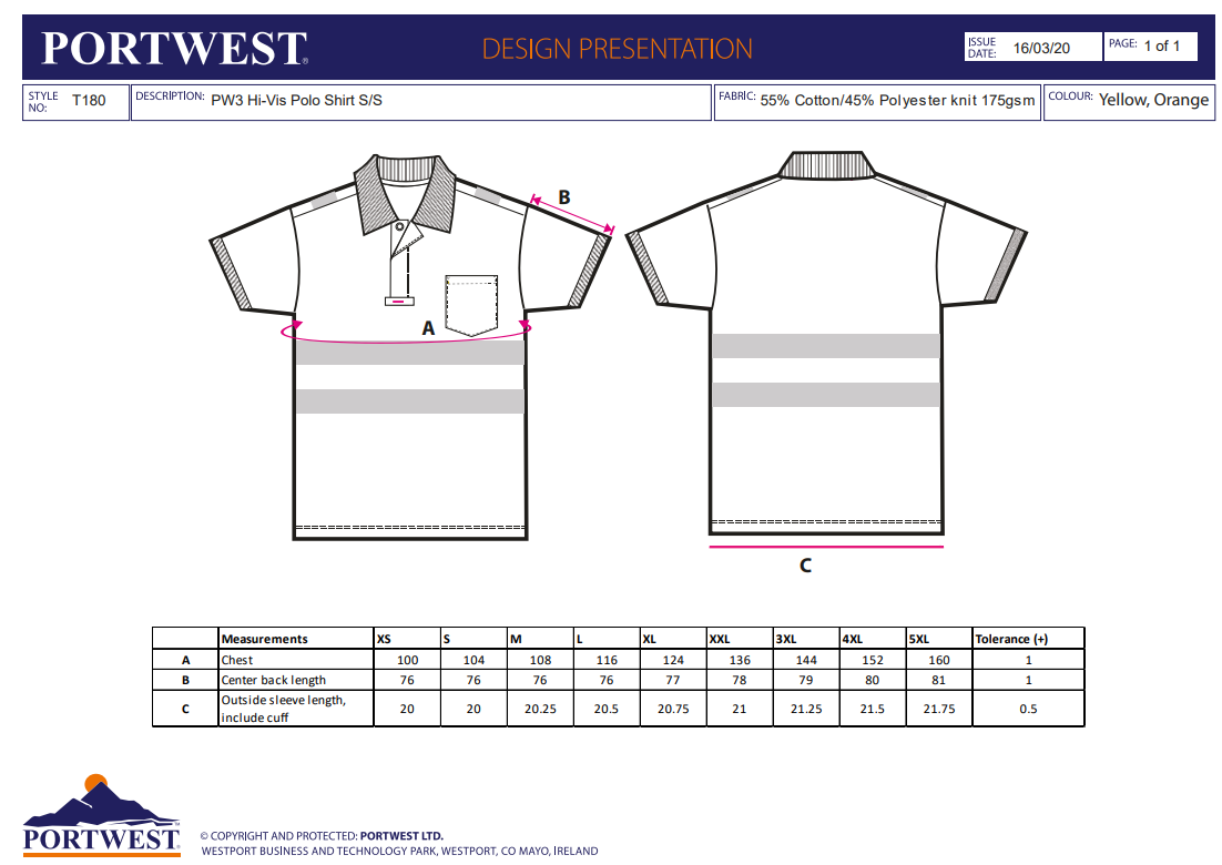 Datasheet - https://documents.portwest.com/datasheet.php?style=T180&lang=GB&itemcol=T180OBR&facility=902