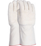 A traditional cut and sewn style terrycloth range offering heat protection up to 250℃C.Heavyweight 32oz cotton terrylcoth is soft and comfortable for the wearer and also offers cut protection to level 2.This gauntlet has a duck canvas cuff to increase protection to the lower arm.