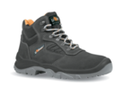Safety shoes high, U-Power, classic and strong of the "Style & Job" range, with suede leather upper with ultra breathable Textile inserts, steel toe cap, anti-puncture, anti-slip, ergonomic steel foil and PU / PU sole, S1P SRC